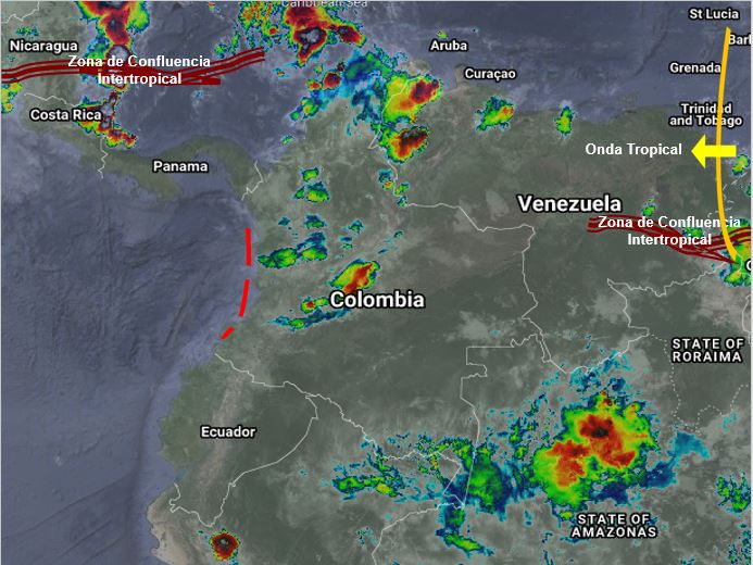 El ingreso de humedad por el oriente del país genera condiciones inestables en gran parte del territorio, favoreciendo la probabilidad de lluvias de variada intensidad y algunas tormentas durante la jornada en sectores de los departamentos de La Guajira, Cesar, Magdalena, Atlántico, Bolívar, Córdoba, Santanderes, Antioquia, Eje Cafetero, Chocó, Valle del Cauca, Boyacá Cundinamarca, Casanare, Meta, Vichada, Guainía, Guaviare, Vaupés y Amazonas. Precipitaciones ocasionales y lluvias de menor intensidad en Arauca, Cauca, Nariño, Putumayo y Caquetá.