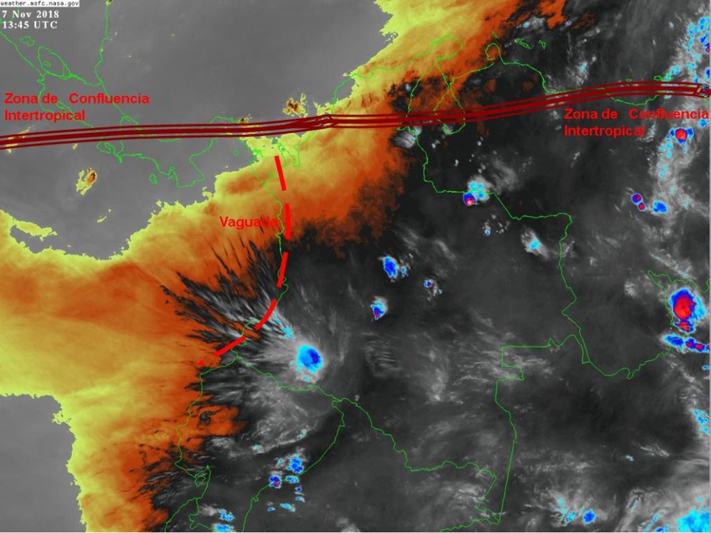 La Zona de Confluencia Intertropical (ZCIT) en interacción con una Vaguada, genera inestabilidad atmosférica en algunas regiones del territorio nacional, favoreciendo el desarrollo de nubosidad y precipitaciones de variada intensidad en sectores de los departamentos de Cesar, Norte de Santander, Cauca, Nariño, Putumayo, Caquetá, Huila, Amazonas, Vaupés, Guaviare, Meta, Vichada, Casanare, Arauca, Cundinamarca, Boyacá y Tolima.