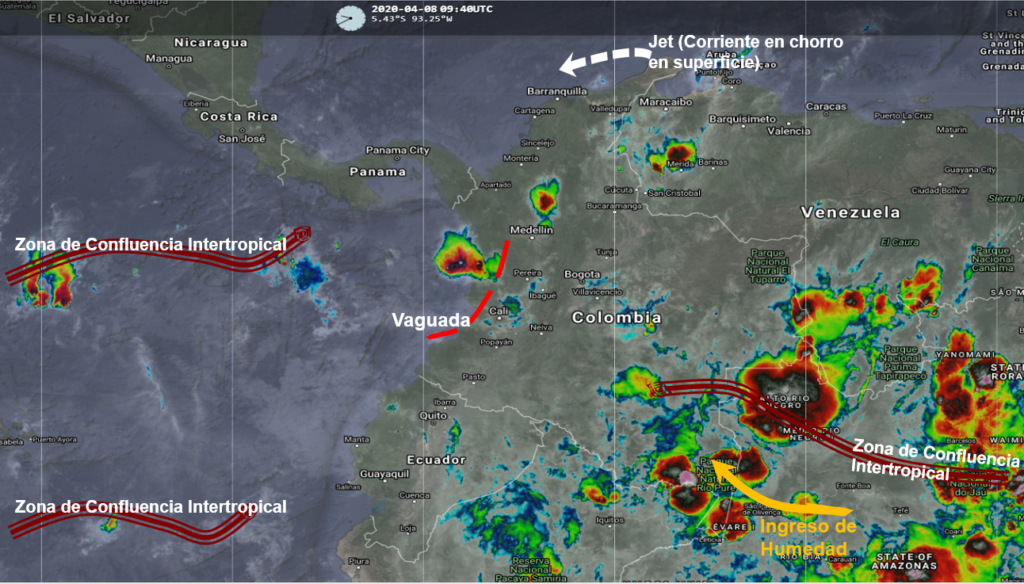 El Ingreso de humedad por el sur y oriente del país favorece el incremento de nubosidad generando lluvias moderadas y fuertes, algunas acompañadas de actividad eléctrica. En horas de la mañana se prevén precipitaciones ocasionales y lluvias sectorizadas en Putumayo, Huila, Nariño, Cauca, Valle y Tolima. En horas de la tarde lluvias moderadas y fuertes en Antioquia, Córdoba, Norte de Santander, Santander, Boyacá, Eje Cafetero, Arauca, Meta, Casanare, Vichada y Guainía. Vientos fuertes en la zona marítima de la región caribe, especialmente en horas de la tarde y noche con intensidades entre 25 y 30 nudos (45 a 55 km/h), debido a corriente en chorro.