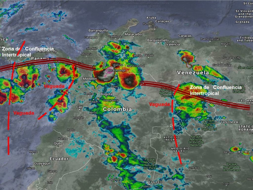 El desplazamiento hacia el norte de la Zona de Confluencia Intertropical (ZCIT) y la interacción con unas Vaguadas, favorece condiciones inestables en gran parte de las regiones Caribe, Andina, Pacífica y La Orinoquia