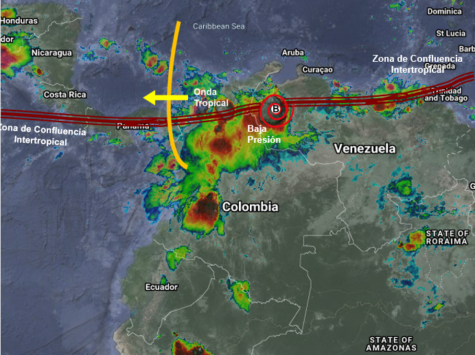 El paso de Onda Tropical del Este y la interacción de la Zona de Confluencia Intertropical con un sistema de Baja Presión generan inestabilidad atmosférica en el norte, Nororiente y centro-occidente del país.