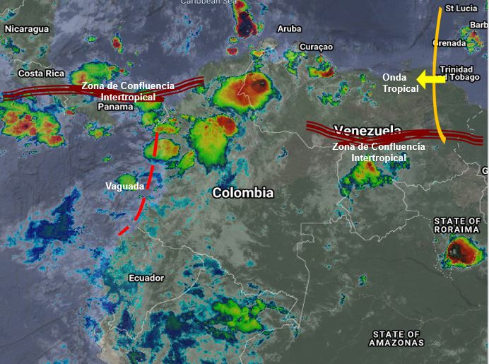 El paso de Ondas Tropicales del Este y la interacción de la Zona de Confluencia Intertropical con una Vaguada en el Pacífico generan condiciones inestables en gran parte del territorio nacional. Se prevén lluvias de variada intensidad y algunas tormentas en Cesar, Magdalena, Atlántico, Bolívar, Antioquia, Chocó, Valle del Cauca, Cauca, Santanderes, Arauca, Casanare, Boyacá, Vichada, Guainía, Vaupés y Amazonas. Precipitaciones ocasionales y lluvias de menor intensidad en La Guajira, Sucre, Córdoba, Cundinamarca, Eje Cafetero, Tolima, Huila, Nariño, Putumayo, Caquetá, Meta y Guaviare.