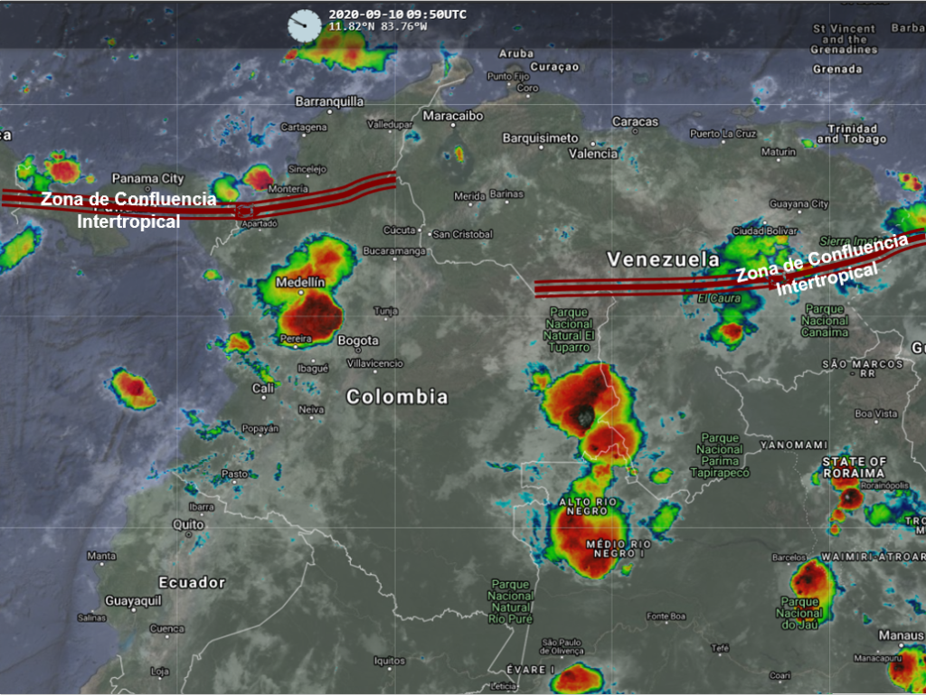 El ingreso de humedad desde el oriente del país genera inestabilidad atmosférica en algunos sectores del país, favoreciendo que se produzcan lluvias moderadas, algunas acompañadas de actividad eléctrica, en sectores de los departamentos de La Guajira, Cesar, Magdalena, Bolívar, Sucre, Córdoba, Antioquia, Chocó, Norte de Santander, Santander, Putumayo, Caquetá, Guaviare y Arauca, especialmente en horas de la tarde. Precipitaciones ocasionales en Boyacá, Cundinamarca, Eje Cafetero, Valle del Cauca, Cauca, Nariño, Meta, Casanare y Vichada.