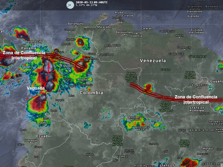 La interacción de la Zona de Confluencia Intertropical con una vaguada en el pacífico, así como el ingreso de humedad desde el oriente genera inestabilidad atmosférica en gran parte de las regiones Pacífica Orinoquia y Amazónica.