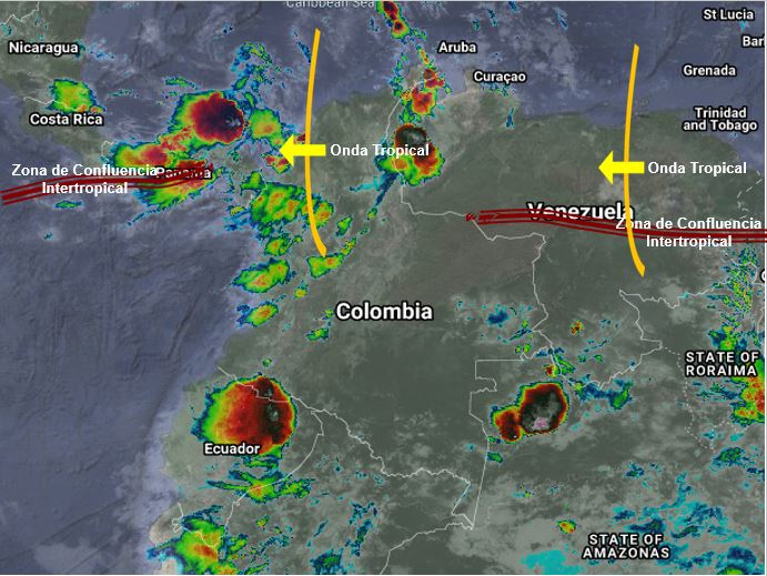 El Paso continuo de Ondas Tropicales del Este, genera inestabilidad atmosférica en gran parte del territorio nacional, incrementando la probabilidad de lluvias ligeras a moderadas y algunas tormentas en sectores de los departamentos de Cesar, Córdoba, Antioquia, Chocó, Valle del Cauca, Cundinamarca, Boyacá, Vichada, Guainía, Guaviare, Vaupés y Amazonas. Precipitaciones ocasionales y lluvias de menor intensidad en La Guajira, Magdalena, Atlántico, Bolívar, Sucre, Santanderes, Eje Cafetero, Tolima, Huila, Cauca, Nariño, Putumayo, Caquetá, Meta, Casanare y Arauca.