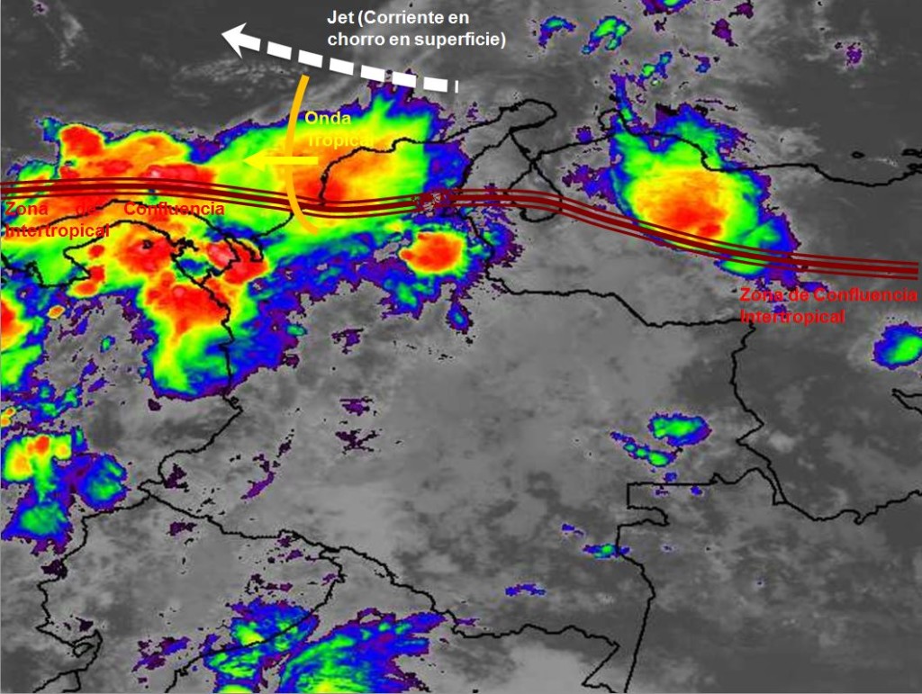 La Zona de Confluencia Intertropical (ZCIT) en interacción con una Onda Tropical, se encuentran generando inestabilidad atmosférica en el norte y noroccidente del territorio nacional, permitiendo el desarrollo de nubosidad, lluvias y vientos fuertes en los departamentos de la Región Caribe, especialmente en Bolívar, Atlántico, Magdalena, Córdoba y Sucre. Lluvias de variada intensidad en Antioquia y Chocó.