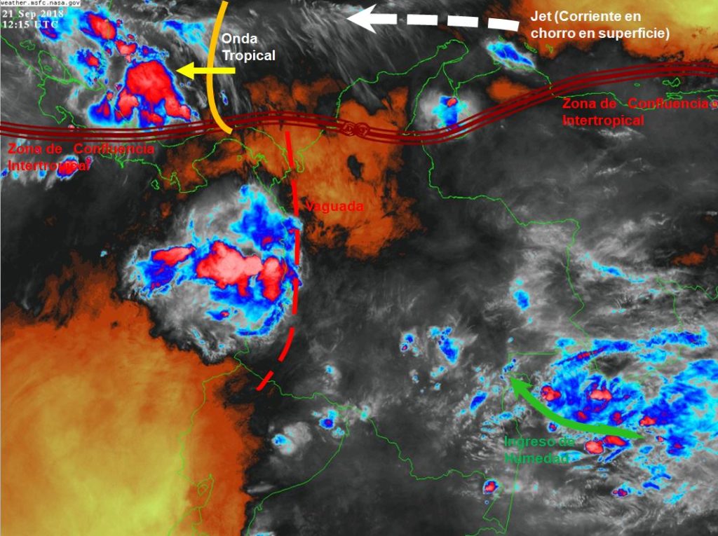 La Zona de Confluencia Intertropical (ZCIT) en interacción con una Vaguada y el ingreso de humedad por el suroriente del país, se encuentran generando inestabilidad atmosférica en algunas regiones del territorio nacional, favoreciendo el desarrollo de nubosidad y precipitaciones de variada intensidad en el Litoral Pacífico, así como en sectores de los departamentos de Chocó, Valle del Cauca, Cauca, Nariño, Caquetá, Putumayo, Amazonas, Guaviare, Meta, Vaupés, Guainía y Vichada.