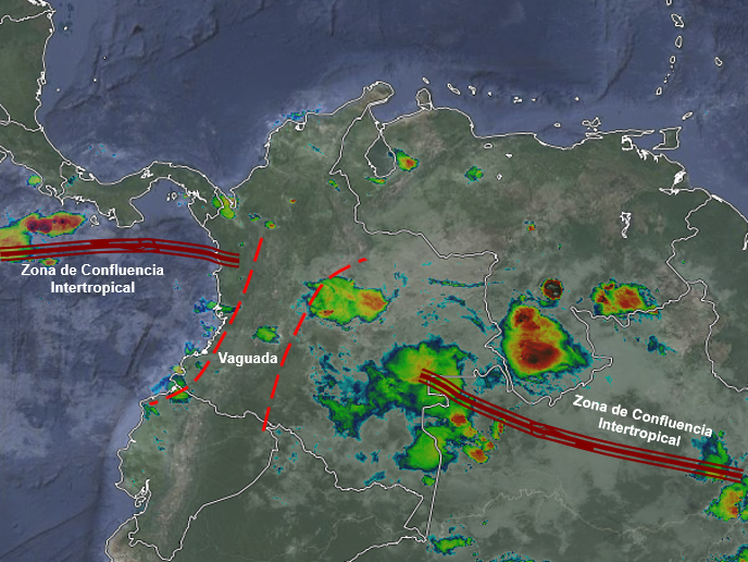El desplazamiento de la Zona de Confluencia Intertropical hacia el norte y su interacción con dos Vaguadas genera inestabilidad atmosférica en gran parte del país.