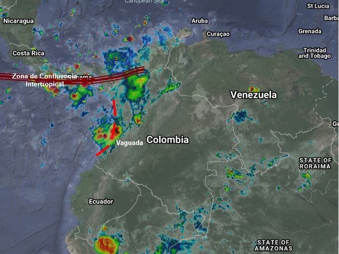 La interacción de la Zona de Confluencia Intertropical con una Vaguada en el Pacífico, favorecen condiciones instables en algunos sectores del territorio nacional, generando lluvias ligeras a moderadas en los departamentos de Chocó, Antioquia, Cesar, Magdalena, La Guajira, Arauca, Casanare y Vichada. Precipitaciones ocasionales y lluvias de menor intensidad en Sucre, Bolívar, Santanderes, Boyacá, Eje Cafetero, Meta, Tolima, Huila, Nariño, Cauca, Valle del Cauca, Caquetá, Guaviare, Guainía, Vaupés y Amazonas.